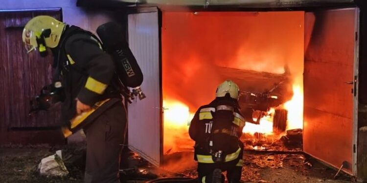 Kora este kaptunk riasztást a Megyei Műveletirányítástól, miszerint Nyergesújfalun a Frankel Leó utcában egy garázsban tűz keletkezett. A helyszínre érkezésünkkor a nyergesújfalui hivatásos egység a tüzet eloltotta, egységünk az utómunkálatokban vett részt.
