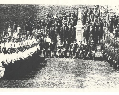 Nyergesújfalu közössége 1896. május 25.-én kettős ünnepet ült meg. Felavatta Magyarország fennállása emlékére emelt obeliszket, és azután pedig felszentelte az önkéntes tűzoltó egylet zászlaját, mely tanújele emberbaráti áldozatkészségének.